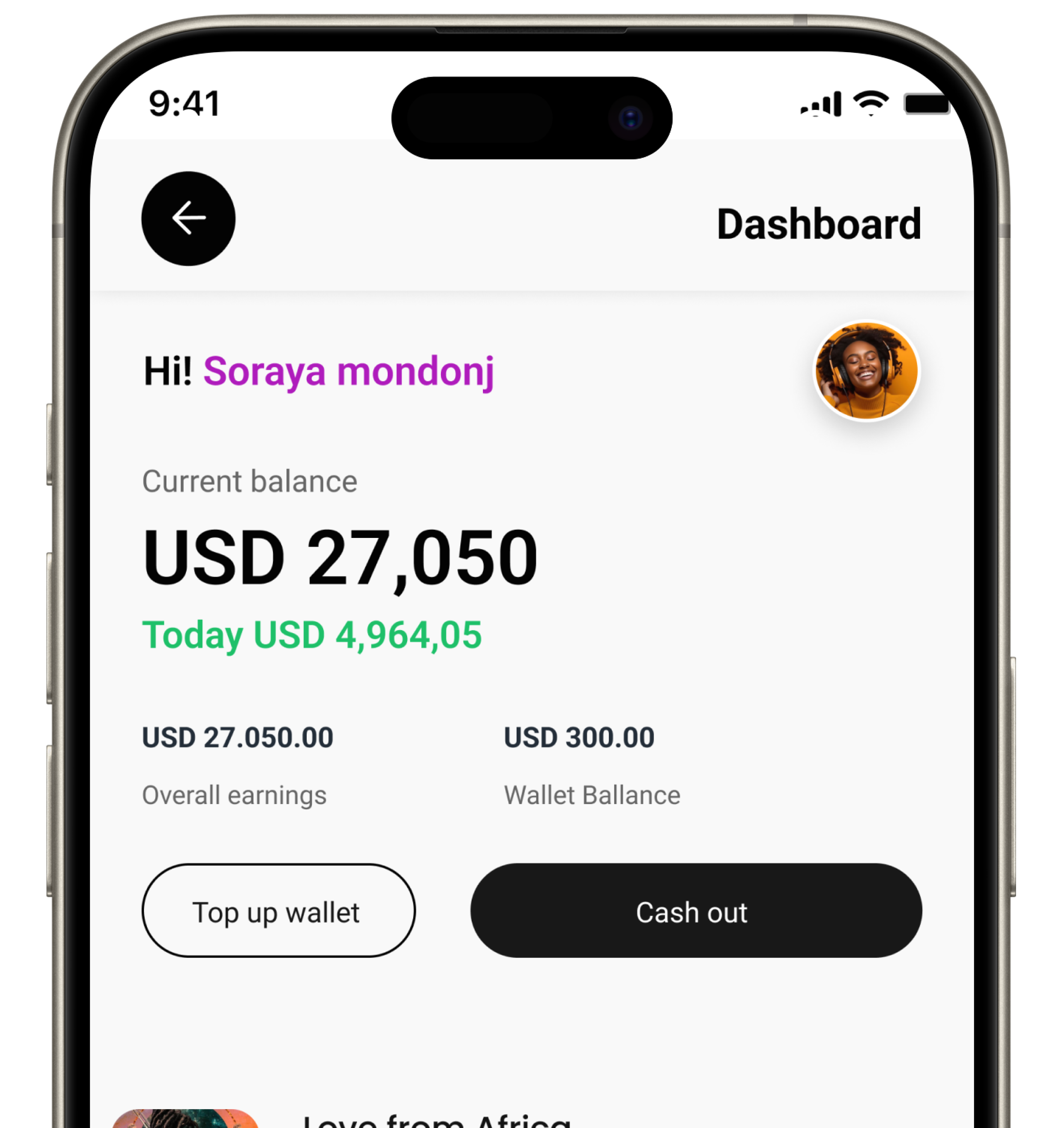 Download the app, connect & earn music royalty💰💵 with your global community.